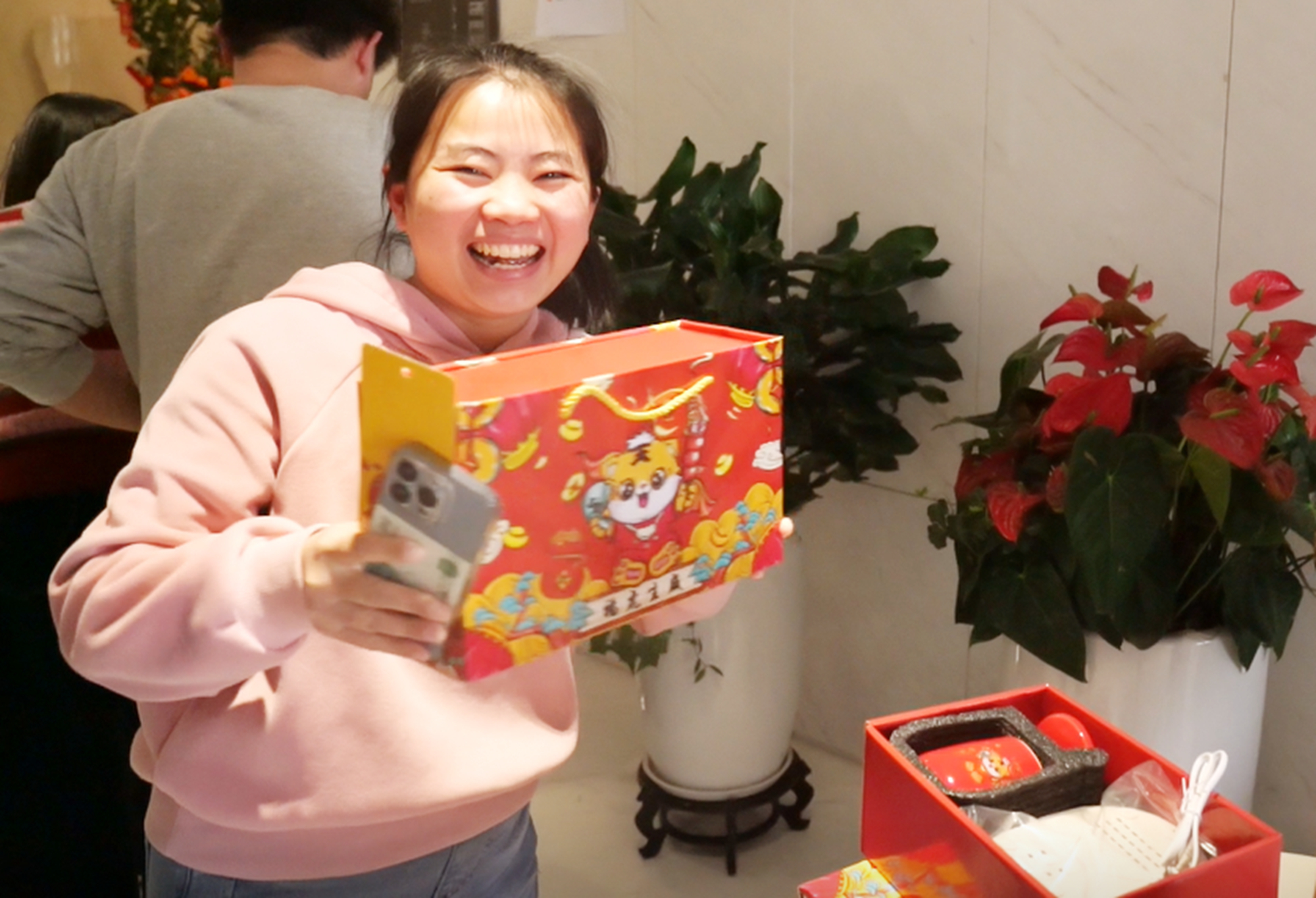 集團培訓發展部的同事們用心準備了500多個燈謎供大家競猜,還精心準備了非常喜慶、貼心的獎品,希望大家都紅紅火火,虎力全開,虎年大發。各項目部同事通過線上競猜的方式與總部共團圓。