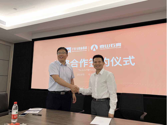 2019年5月13日,千里馬裝飾集團與泰山石膏有限公司的戰略合作簽約儀式在千里馬裝飾集團公司總部深圳舉行。